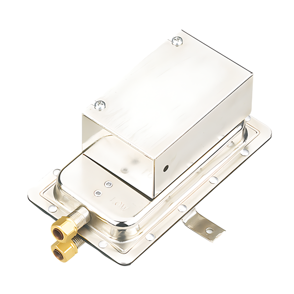 金屬外殼內有隔膜、校準彈簧、微動開關等。接口位于隔膜的兩邊,連接管采用6.35mm鋼管或硬管,用螺母連接。外防護罩避免意外接觸到開關觸點螺絲和調整螺絲。
