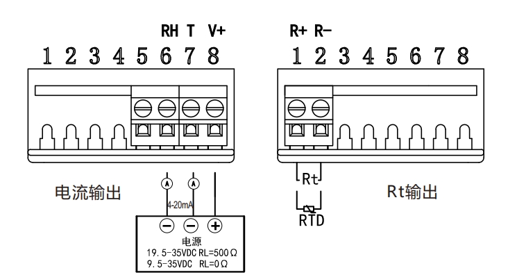 ≤500Ω(電流型),≥2KΩ(電壓型)