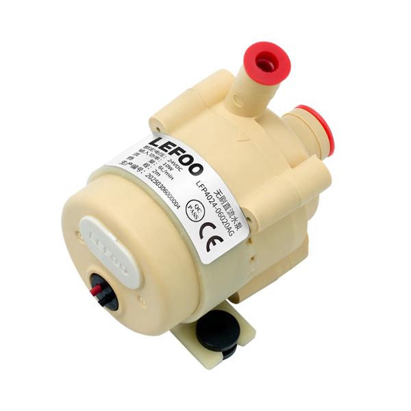 LFP40系列微型無刷直流泵高溫款符合CE/rohs認(rèn)證,流量再3~7L、最大揚(yáng)程2.5米;承壓部分用高分子塑料,靜密封設(shè)計(jì)無泄漏,搭配低噪音直流電機(jī)并具備多重保護(hù)功能。其電壓、流量可定制,體積小、重量輕,環(huán)境溫度適應(yīng)-20~40℃,介質(zhì)溫度適應(yīng)-20~55℃,電壓范圍18~30VDC,絕緣等級F級,防護(hù)等級可選IP55/IP68,適用于熱飲機(jī)、廚下式凈飲機(jī)開水機(jī)、儲(chǔ)熱式采暖水循環(huán)、咖啡機(jī)、凈水器、果汁機(jī)、飲水機(jī)、飲料機(jī)、自動(dòng)販賣機(jī)等設(shè)備。